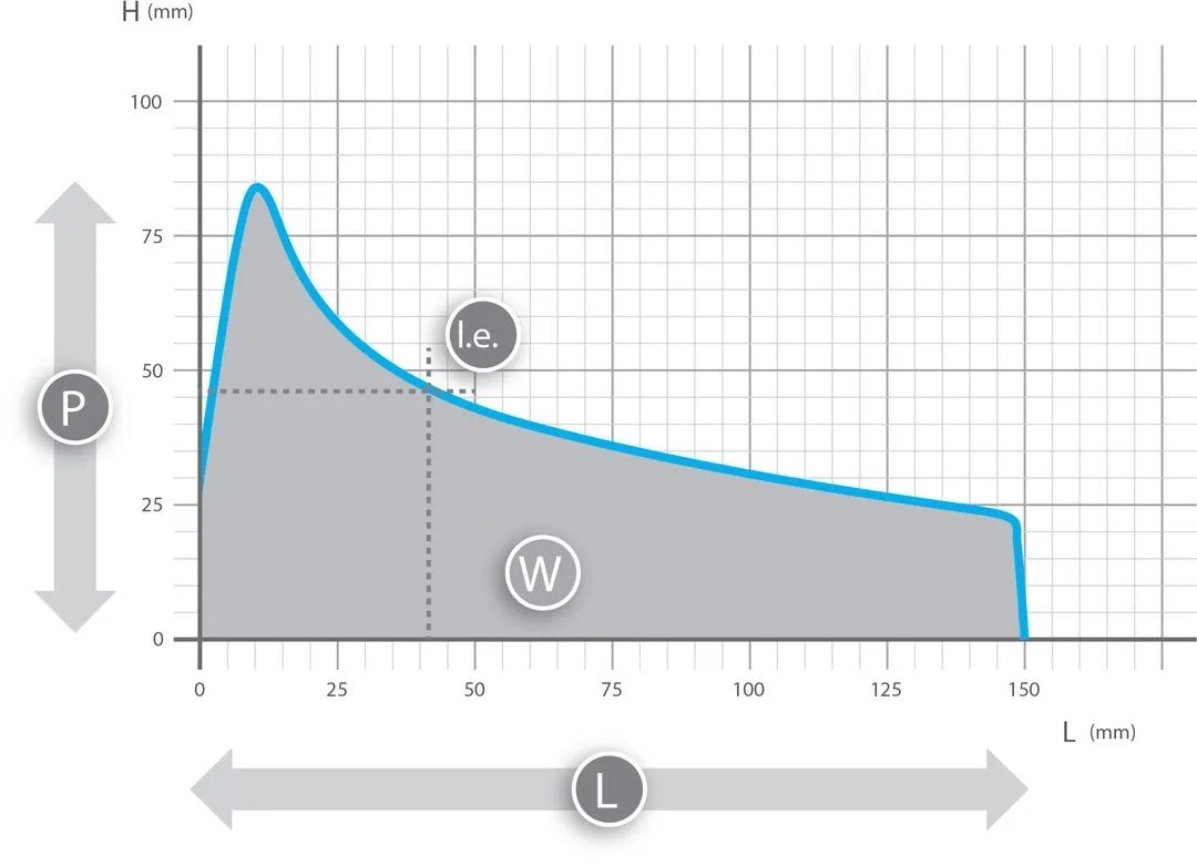 le:彈性指數, le=P200/P (P200:距離曲線起點4cm處的壓力)